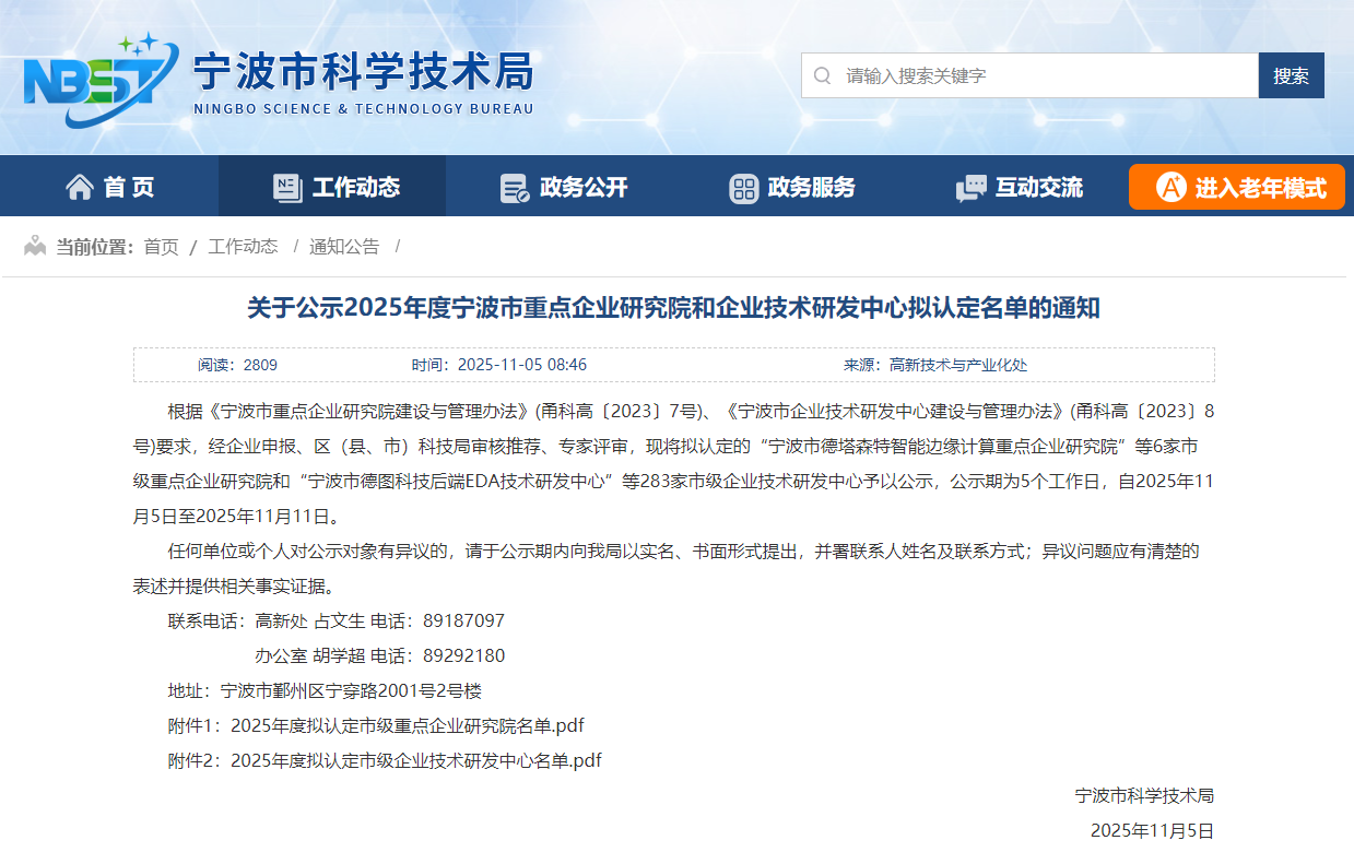 近日,宁波市科学技术局正式公布了《2025年度新认定市级企业研发机构名单》。